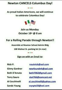 FOLLOWED by a Columbus Day rally celebration from 10am to 11am at Coletti-Magni Park on Watertown Street in Newton!!